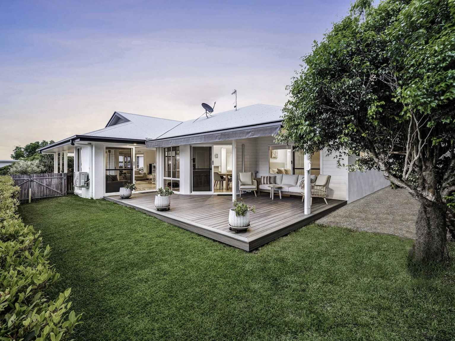 Outside, you'll find a spacious alfresco entertaining deck with a retractable awning for year-round shade, overlooking the grassy backyard. Sit back and take in the views of Mount Coolum's National Park, where privacy and peace are guaranteed. The fully fenced backyard provides the perfect space for children and pets to play. The front of the property features an additional patio area and landscaped garden to enjoy the treed outlook to the distant hills.