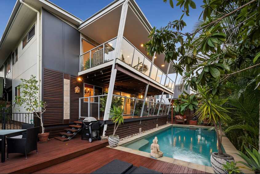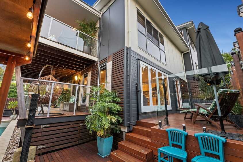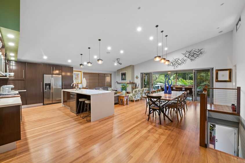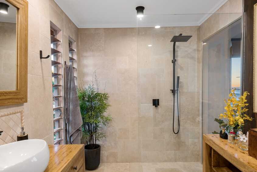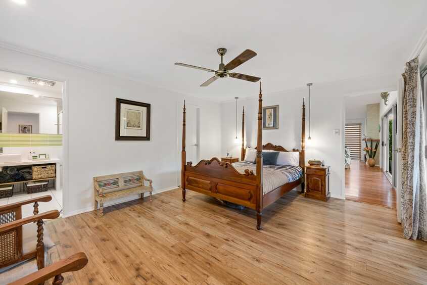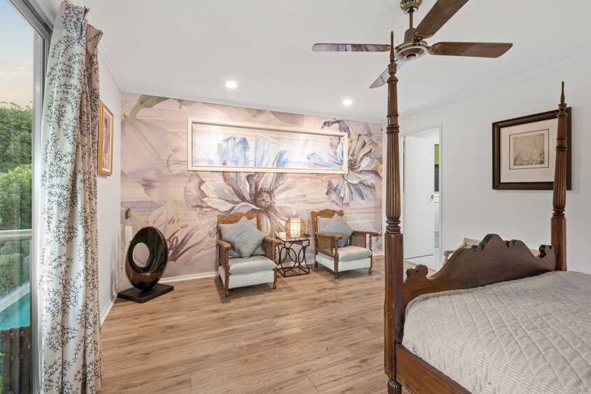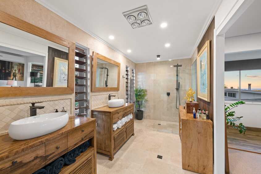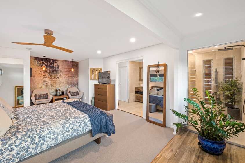 The sumptuous master suite occupies the top level with views to Mount Coolum National park and the ocean. It is serviced by a first-class bathroom and walk-in robe area.