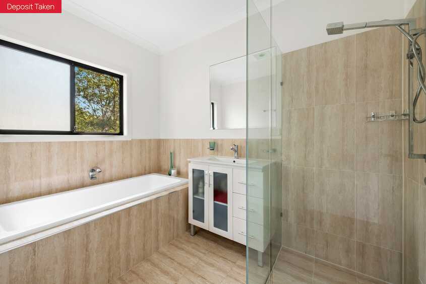 The four bedrooms all have built-ins and stainless steel ceiling fans, and the master bedroom has an ensuite and walk-in wardrobe. Both bathrooms are chic and elegant, with the main bathroom featuring a gorgeous deep bath where you can enjoy a steaming hot soak after a hard day at work. There is also a separate powder room for your convenience.