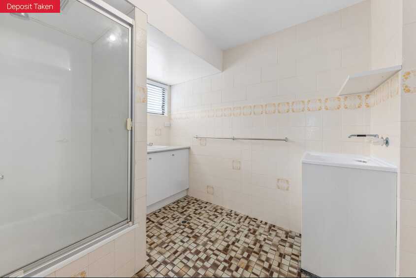 The combined bathroom and laundry include a shower with a bath base for children.