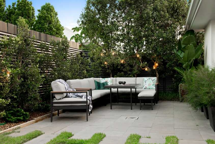 - Variety of outdoor zones - parquetry sitting area - sunfilled paved lounge.